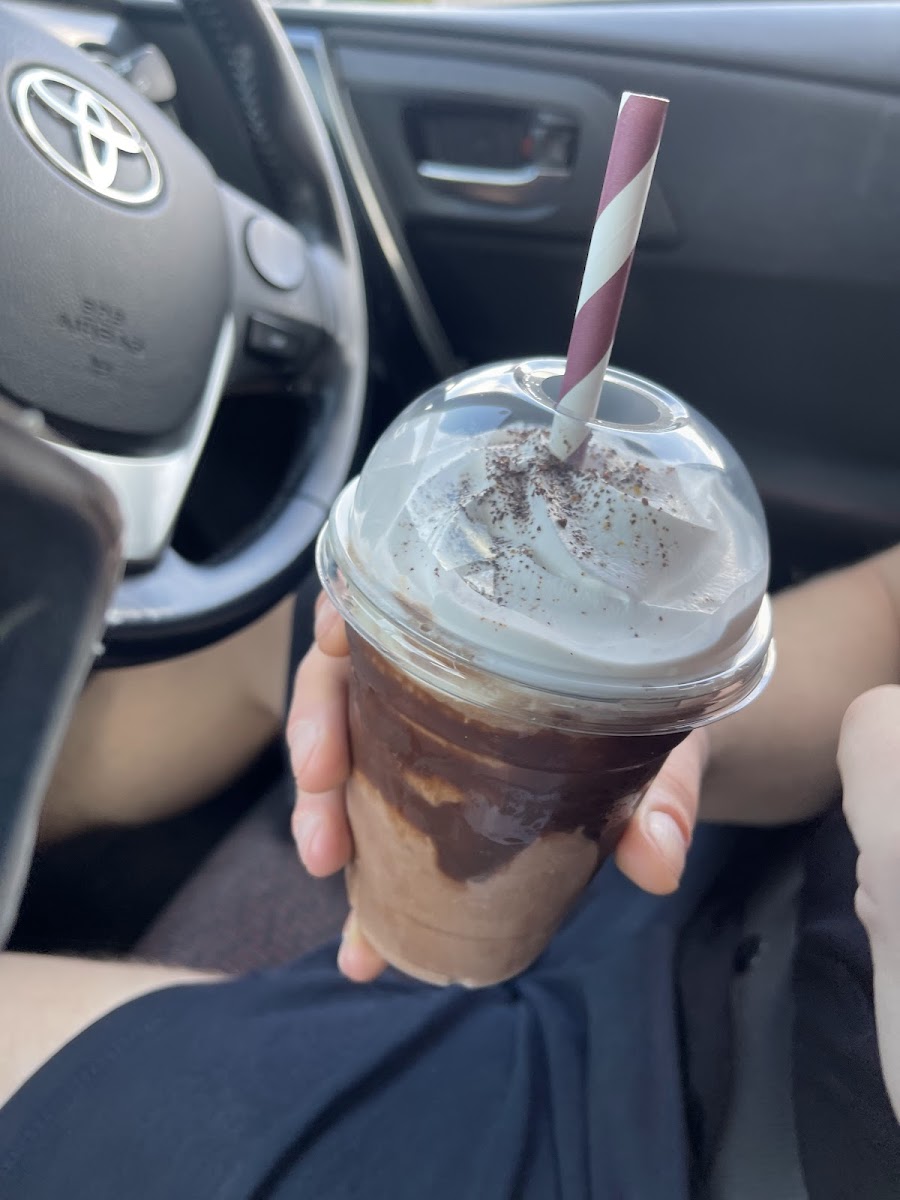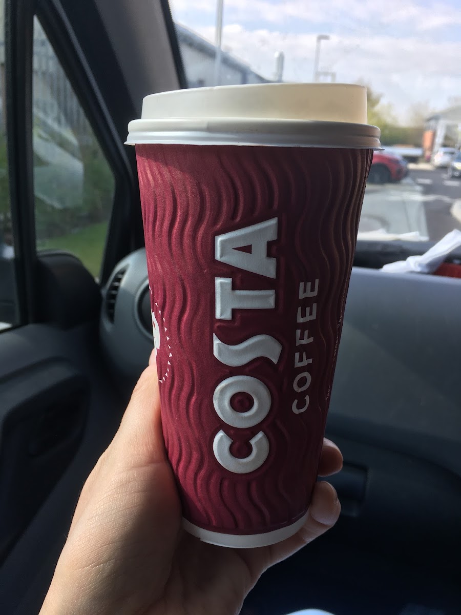 I've passed by many times but never stopped, it was a nice day so fancied a sit down coffee. The store has a nice layout, it's not a huge space but the seating plan is well thought out. Nice atmosphere, good coffee and no complaints. I did feel like the staff were up against it though, 1 on the drive thru and 2 to take orders and make drinks isn't enough for a steady flow of customers . I could feel their frustration but they did their best and I respect it